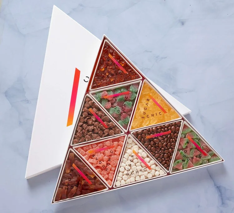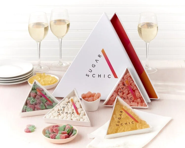 Sugar Chic takes you back in time with this new collection of all your favourite childhood candies & treats! Each comes with our Signature Triangles of goodies straight out of our childhoods, packaged in our sleek and sophisticated box-- which is anything but childish.